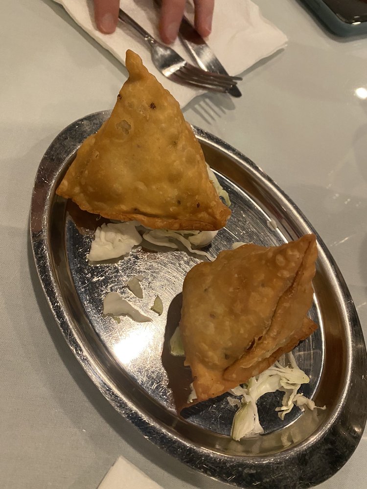 2 pieces. Fried crisp patties stuffed with mildly spiced potatoes and peas.